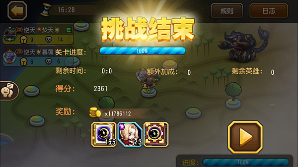 1、所有關卡挑戰完成,並且把BOSS擊殺之後完成度達到100%可以獲得獎勵。或者到時間結算獎勵。