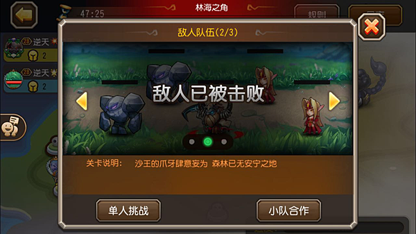3、擊殺全部敵人這一小關就算過了,如果超時的話只有一次救援機會,救援失敗的話兩隊英雄都會全部死掉。