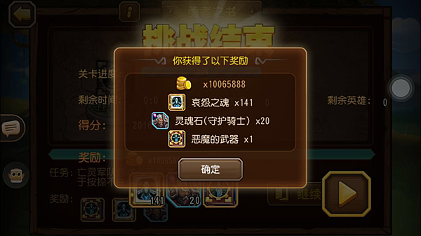 4、得分加成與派遣英雄、剩餘時間、存活的英雄有關,分數越高得到的獎勵就越多。慢慢的以後研究的方式就是怎麽樣利用最快的時間通關,死亡最少的英雄。